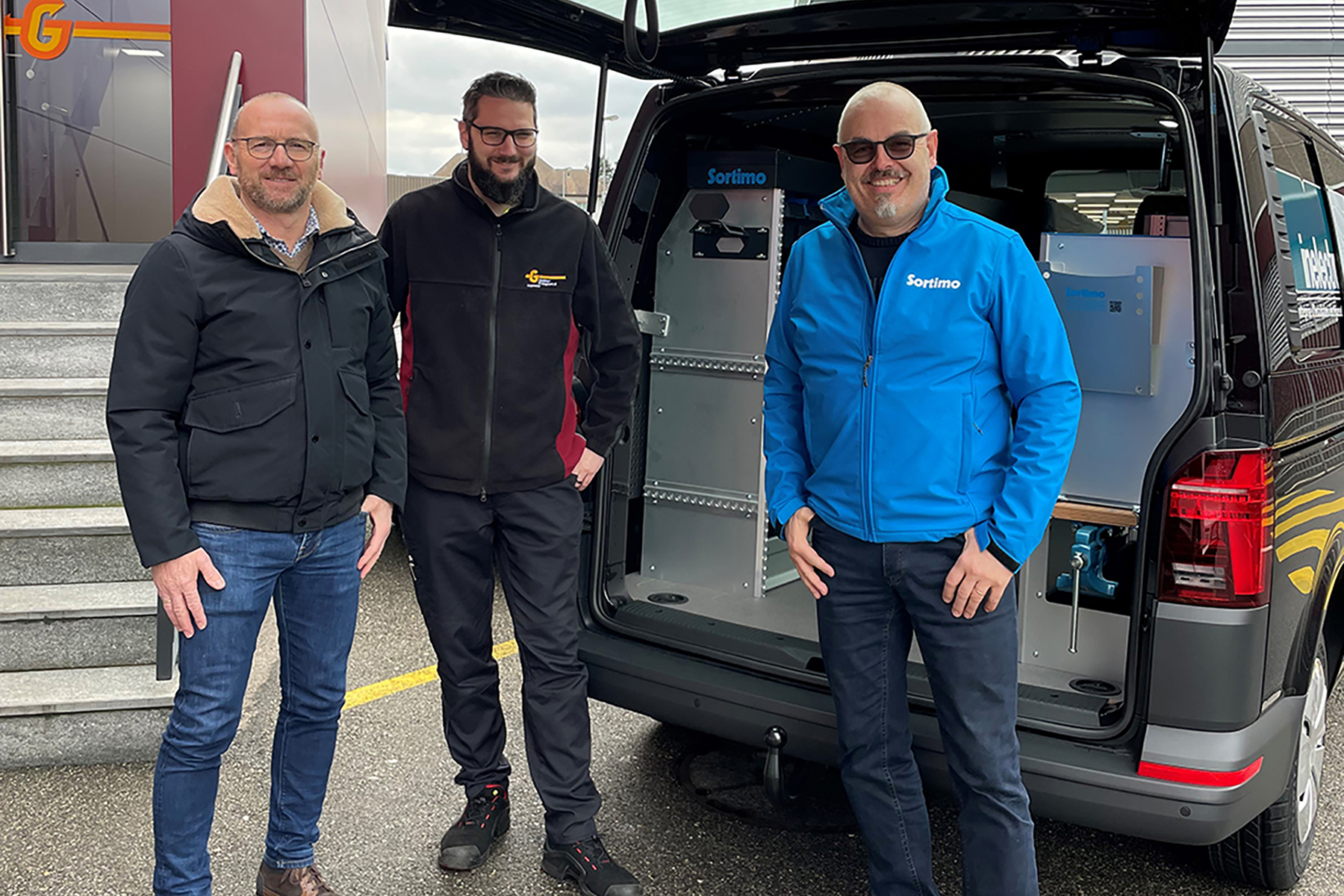Losgelegt haben wir mit einem VW T6.1 Transporter der Inelectro SA aus Porrentruy. Dazu haben wir eine modulare, dreiteilige Sortimo-Globelyst-4-Fahrzeugeinrichung in «coolgrey» gebaut und ausgeliefert. Sie besteht aus drei Bauteilen: einem Einrichtungsblock links, einem rechts und einem in der Mitte.