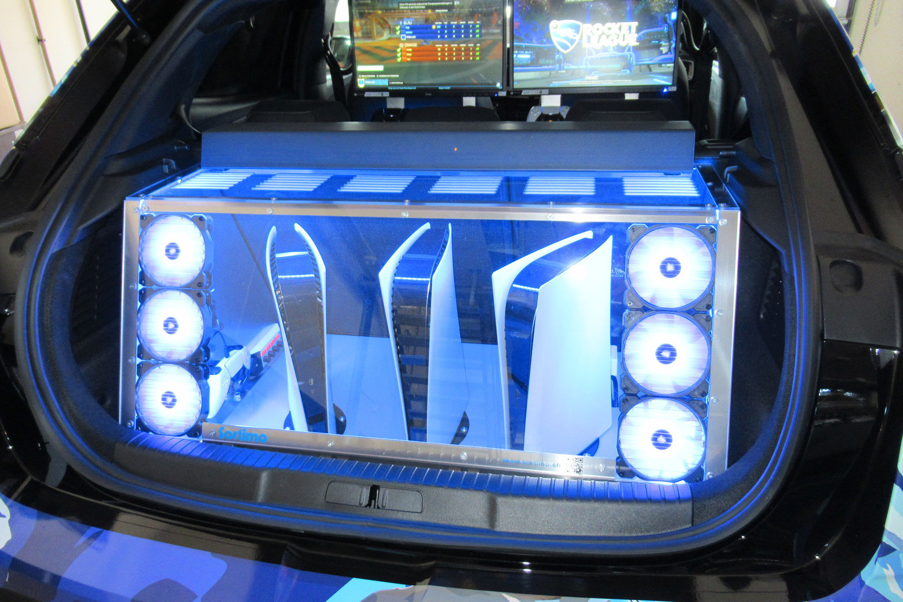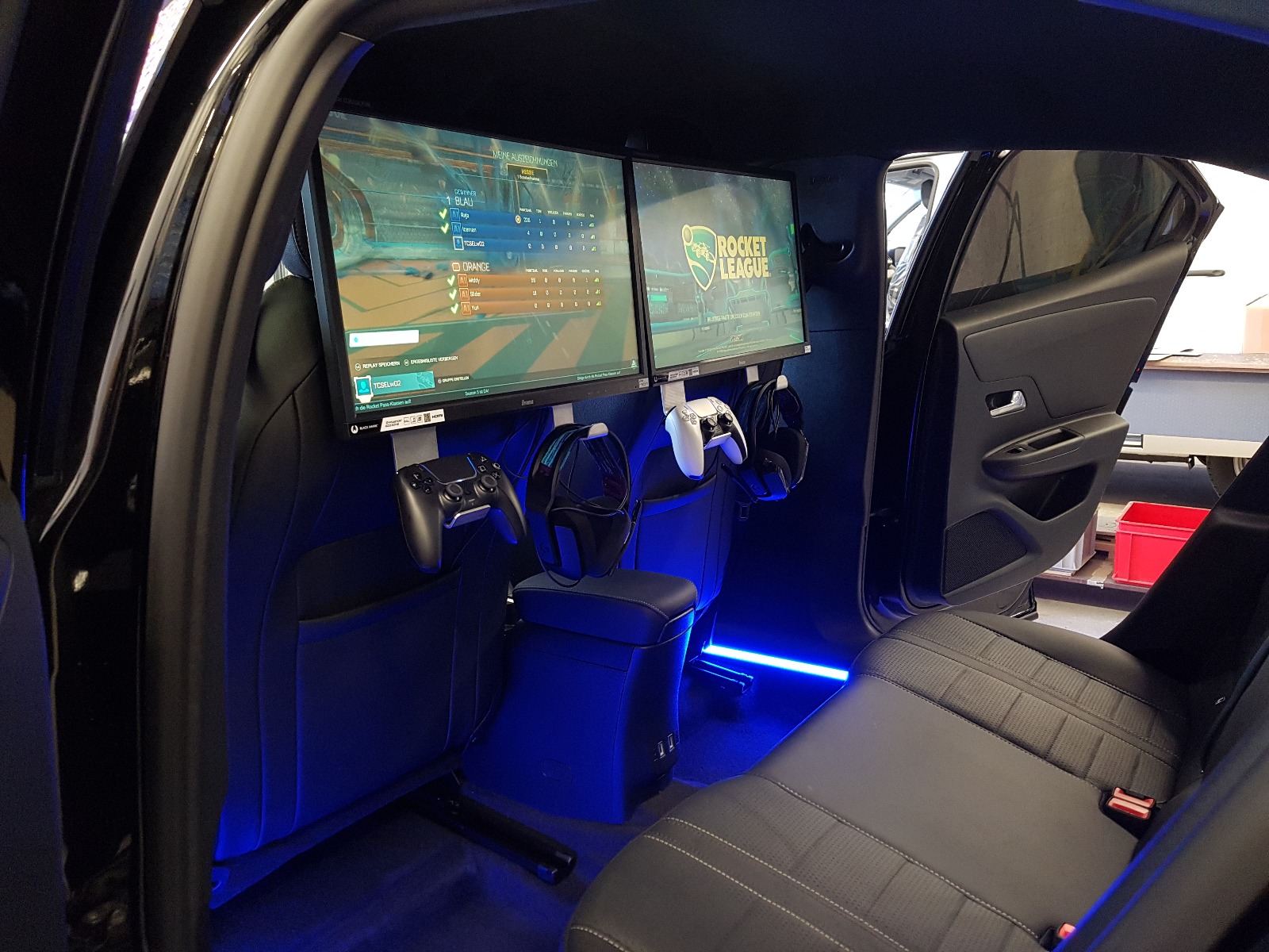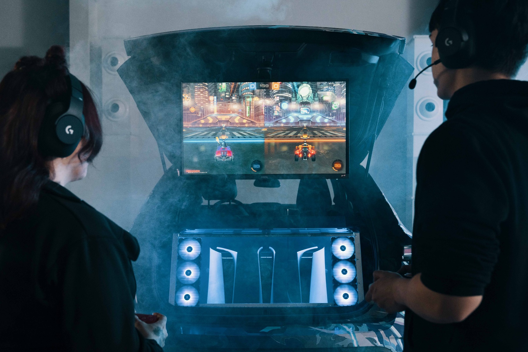 Die Spielkonsolen und der grosse Screen im Kofferraum des Mokka-e E-Sports laden als mobile Spielplattform zum gamen ein.